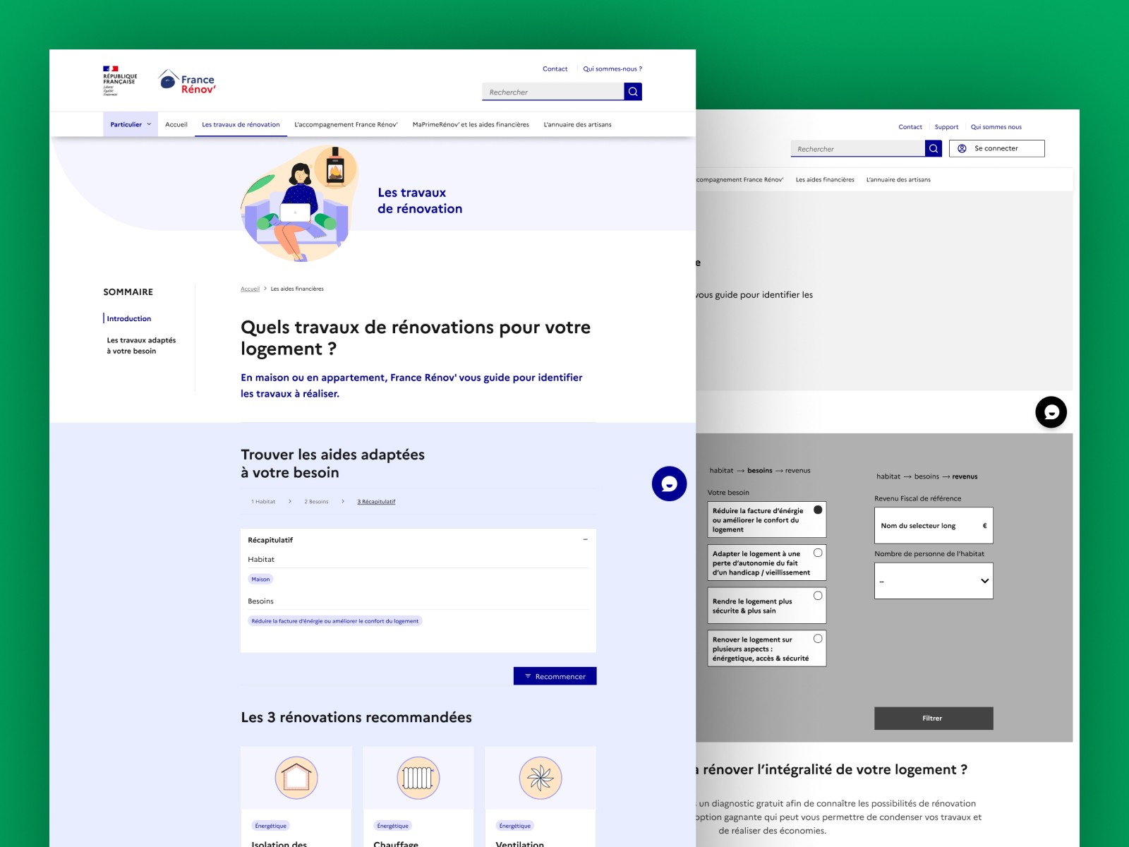 Produce all the necessary screens and in particular the decision engine to match the renovation work with the available grants.